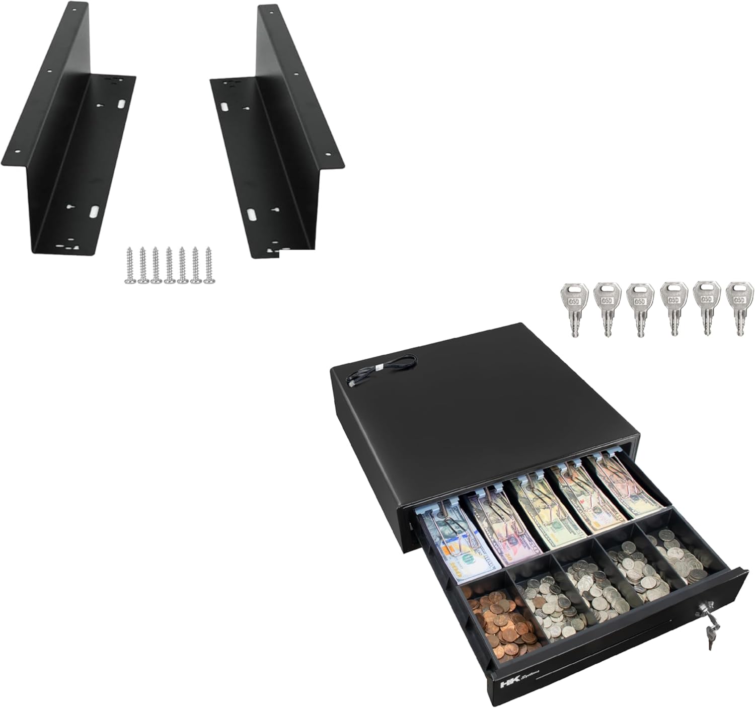 Economical Heavy Duty Compact 16" Black POS Cash Drawer with 5 Bill/5 Coin, Removable Coin Compartment, 24V, RJ11, Single Large Media Slot with Under Counter Mounting Metal bracket