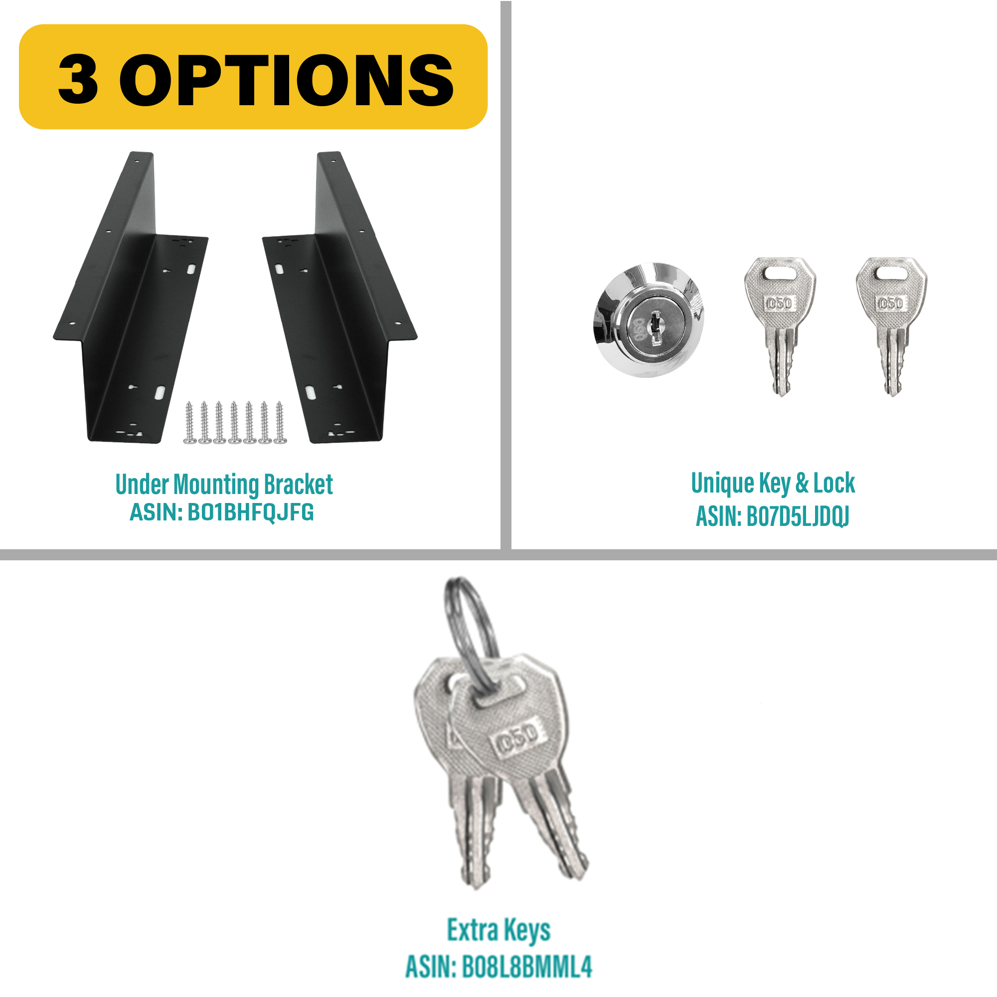 • 🔑 Additional Accessories: Extra keys (Amazon ASIN: B08L8BMML4), Unique Key and Lock (Amazon ASIN: B07D5LJDQJ), and Under Counter Mounting Metal Bracket (Amazon ASIN: B01BHFQJFG) are available if needed.